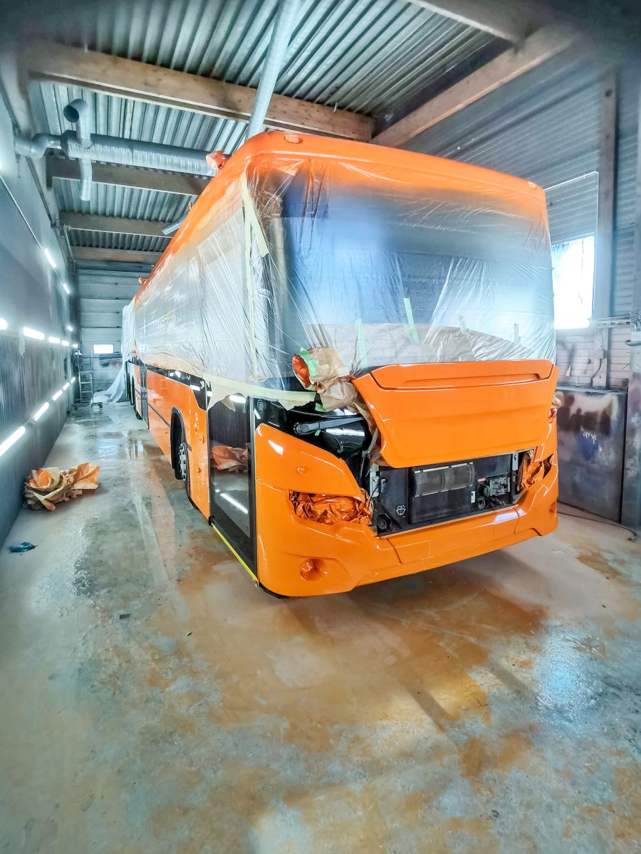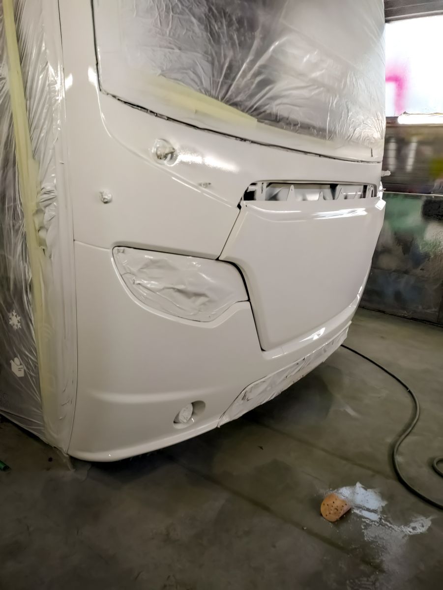 Maalaamme omassa maalaamossa. Korjaustyöt ei siis viivästy sen takia, että ajoneuvoa tarvitsee siirtää eri paikkaan odottamaan maalausta.